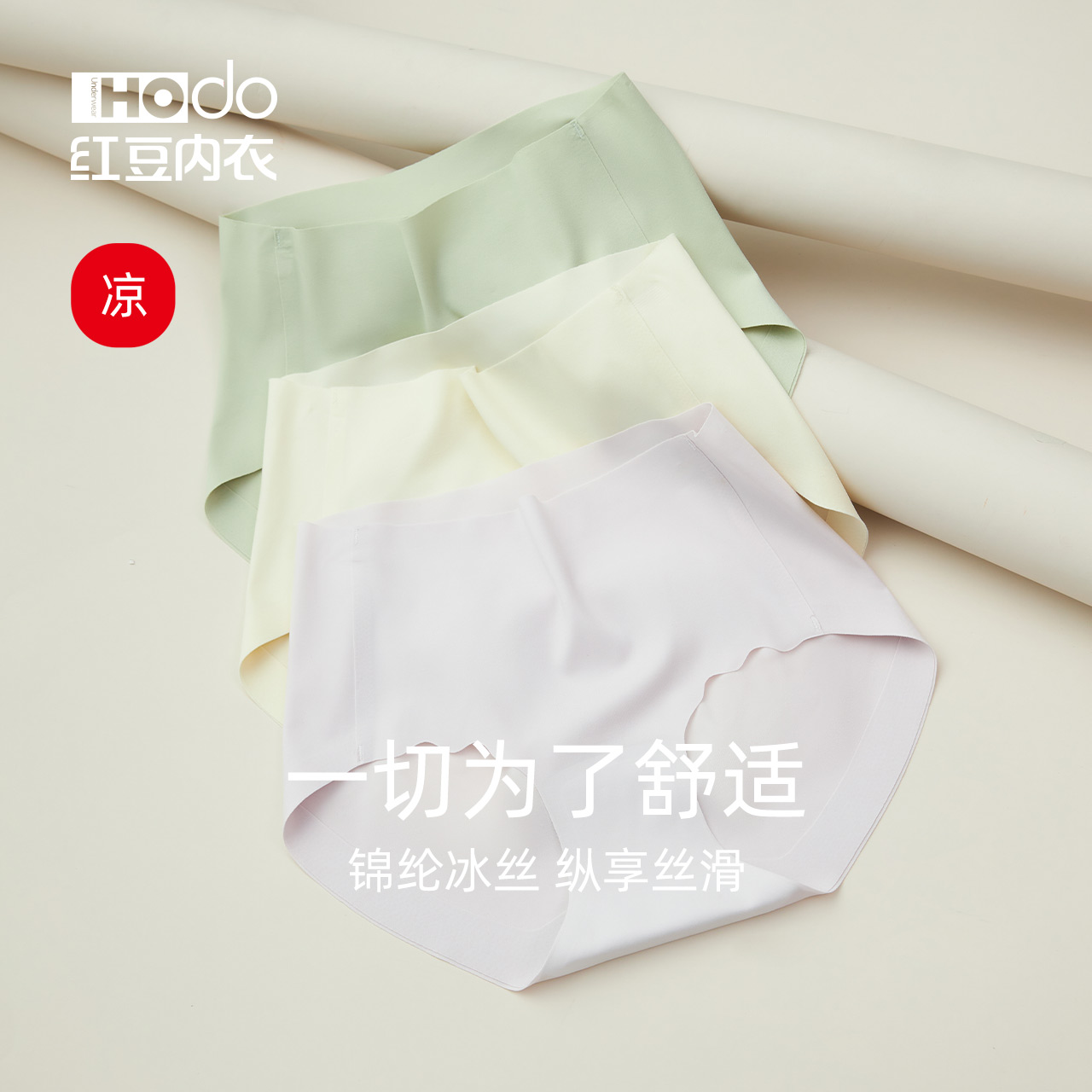 【产品名称:红豆女士冰丝无痕内裤抗菌裆中腰蜜桃臀薄夏季透气提臀隐形三角裤】