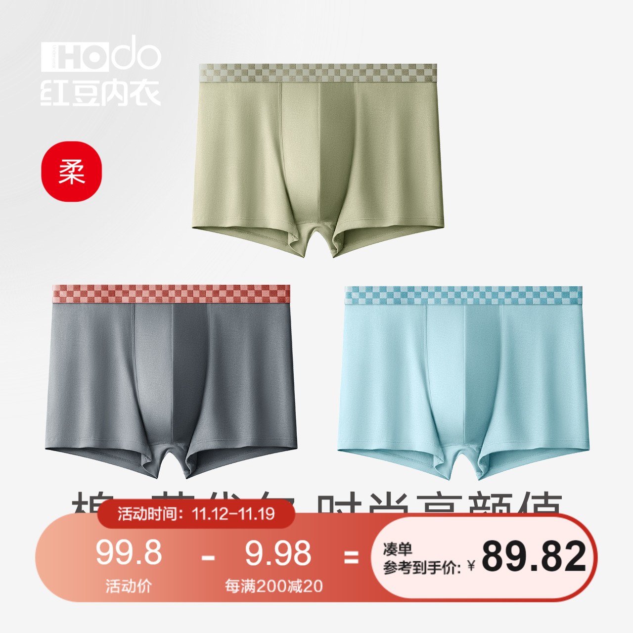 【产品名称:红豆男士内裤莫代尔中腰四角裤时尚纯棉裆抗菌短裤平角裤头男】