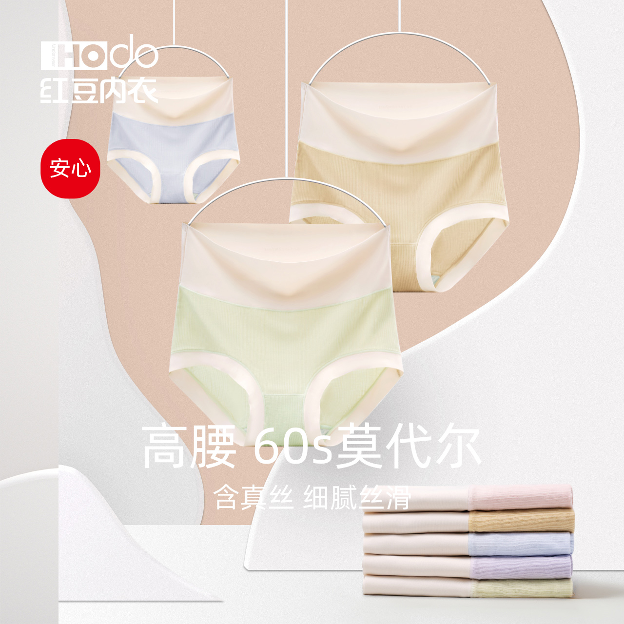 【产品名称:红豆女士高腰内裤纯棉抗菌裆60支莫代尔含真丝夏薄收腹女生三角裤】