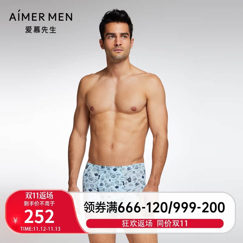 【产品名称:爱慕先生内裤莫代尔印花舒适男士包腰平角裤NS23J613】