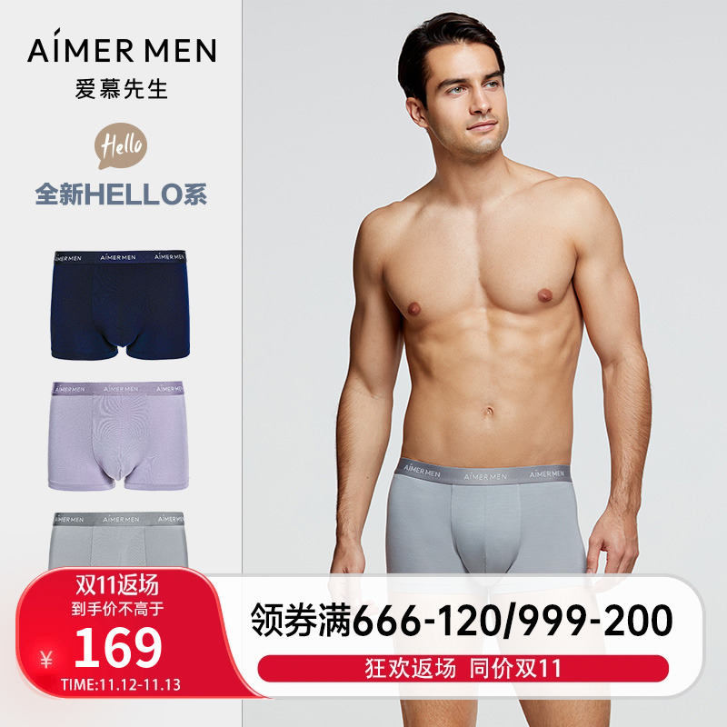 【产品名称:【3件包】爱慕先生平角裤HELLO裤系列夏季男士抗菌内裤NS23C235】