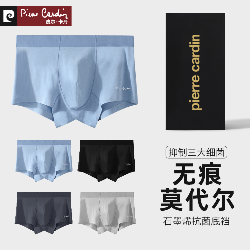 【产品名称:皮尔卡丹男士内裤莫代尔平角裤无痕石墨烯抗菌冰丝四角裤2021新款】