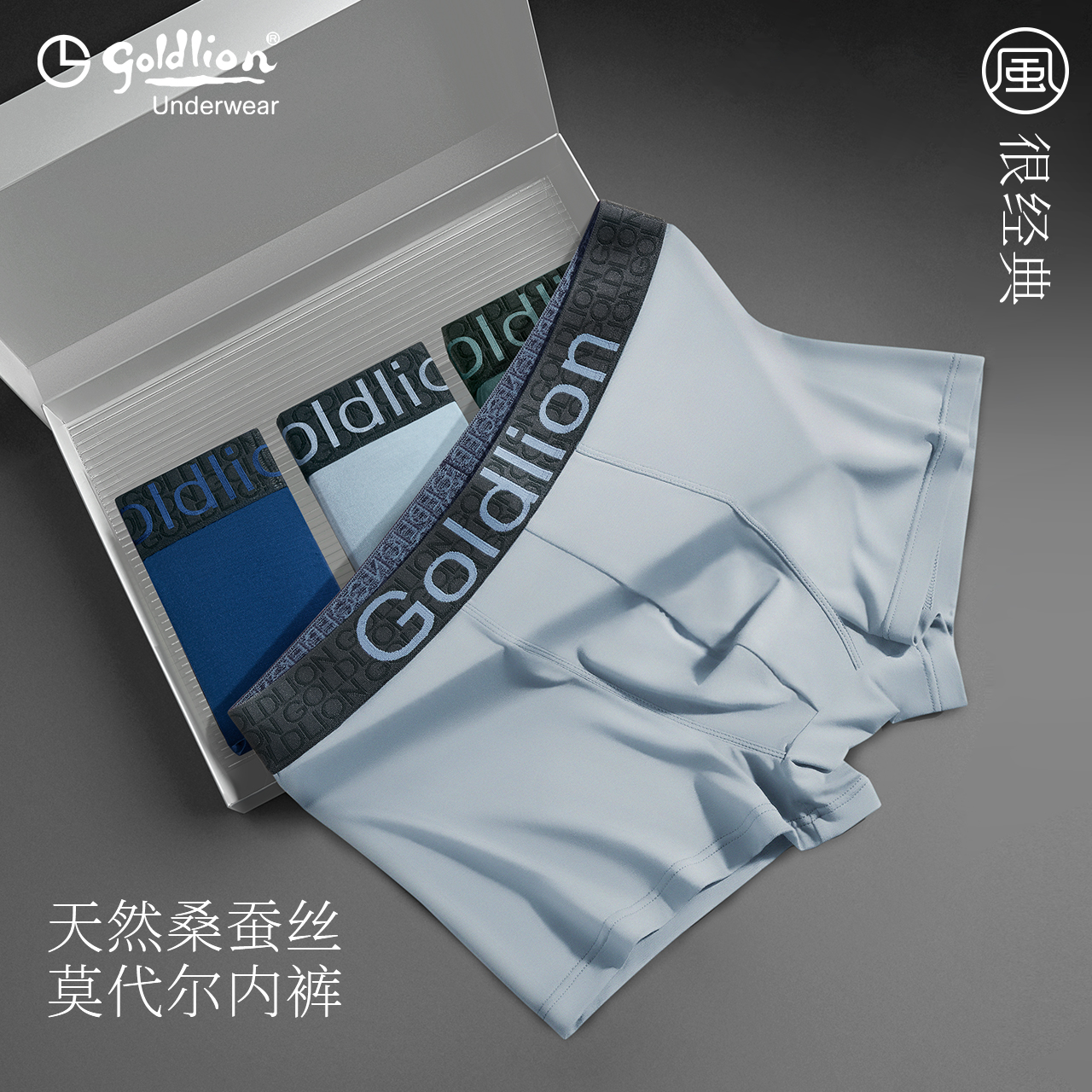 【产品名称:金利来男士内裤男生薄款冰丝无痕莫代尔桑蚕丝平角四角短裤】