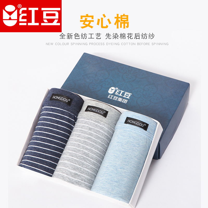【产品名称:红豆男士纯色棉质舒适透气条纹青年中年安心棉红豆杉平角四角内裤】