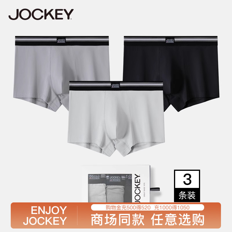 【产品名称:jockey男士内裤纯棉亲肤透气四角裤3条装防夹臀吸汗男生平角裤】
