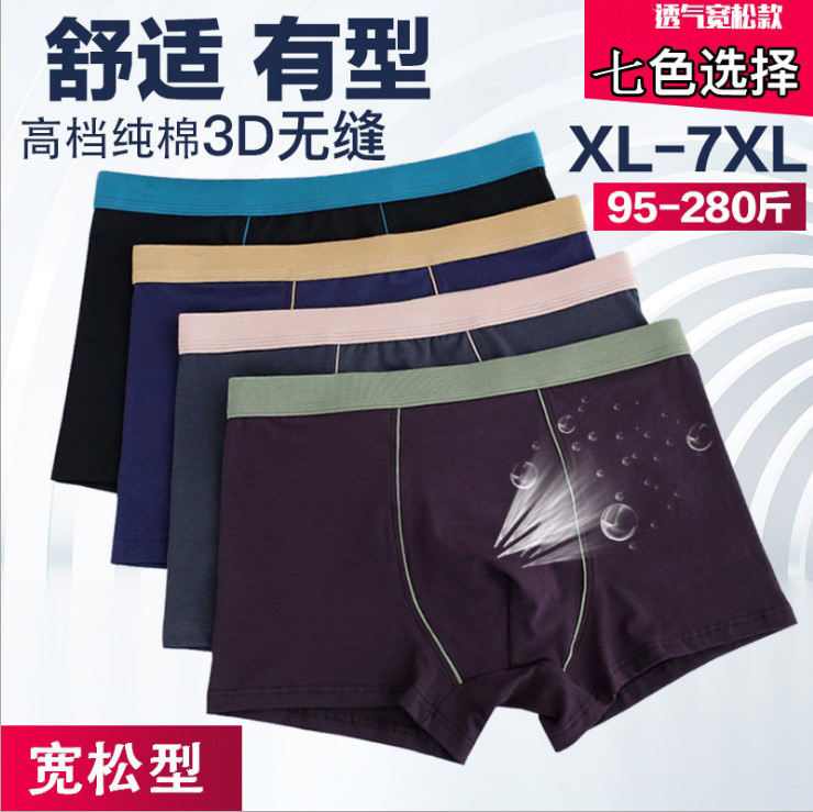 【产品名称:3条装 全棉质平角内裤男士100%纯棉档加肥加大男底裤衩肥佬短裤头】