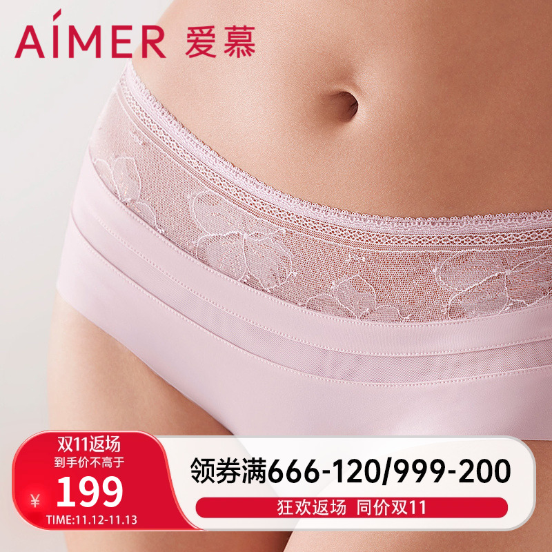【产品名称:【爱慕1993系列】内裤女蕾丝薄纯棉底裆中腰平角蕾丝内裤AM238501】