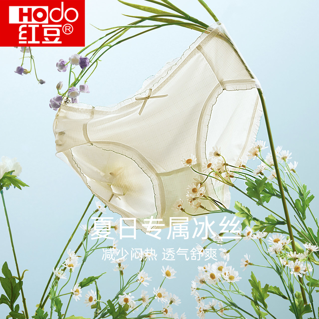 【产品名称:红豆女士抗菌内裤裆甜美少女冰丝凉感轻薄款夏季蕾丝肌理感三角裤】