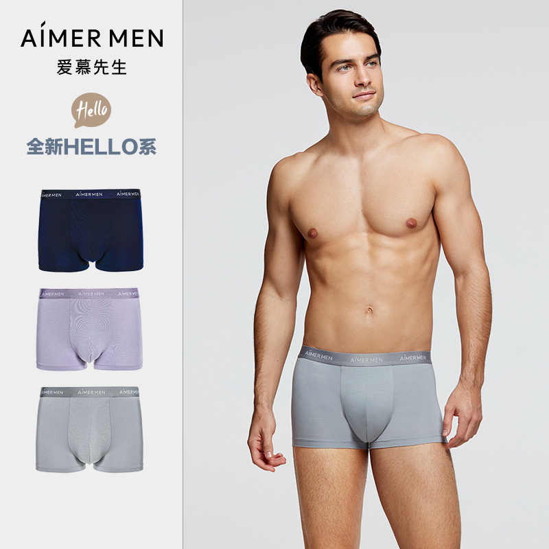 【产品名称:【HELLO系列】爱慕先生男士hello系列莫代尔抗菌平角内裤3条装】