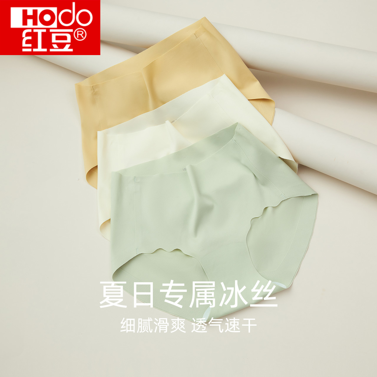 【产品名称:红豆女士内裤冰丝无痕抗菌裆中腰蜜桃臀薄夏季透气提臀隐形三角裤】
