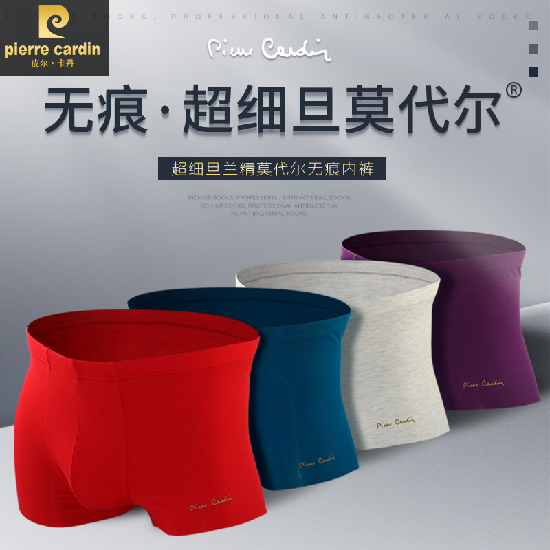 【产品名称:商场同款 皮尔卡丹内裤男士无痕平角裤 超细旦莫代透气尔男平角裤】