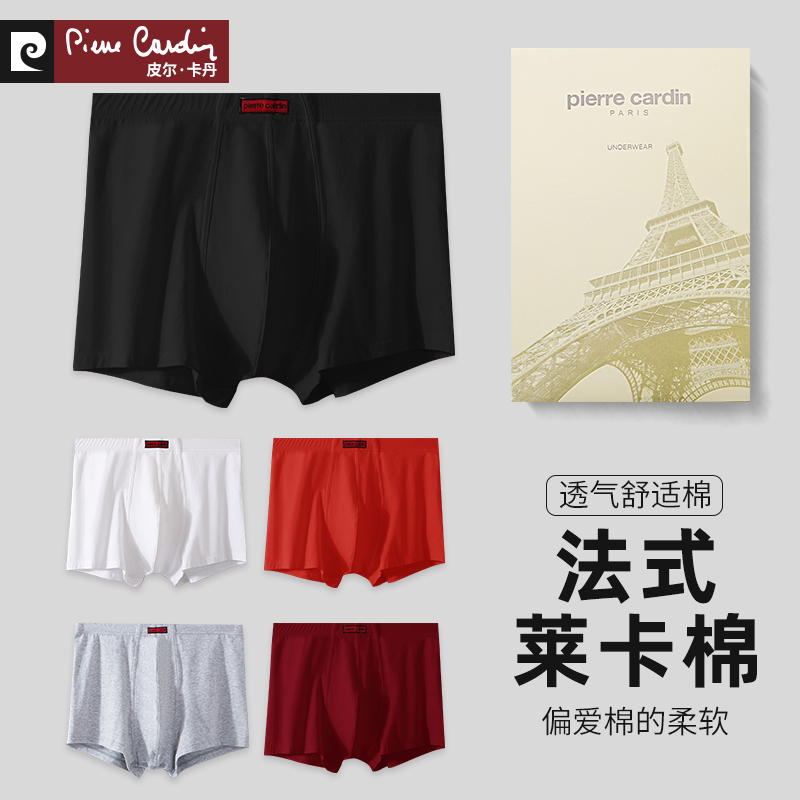 【产品名称:皮尔卡丹男士白内裤夏季薄款纯棉透气吸汗运动四角短裤头平角裤衩】