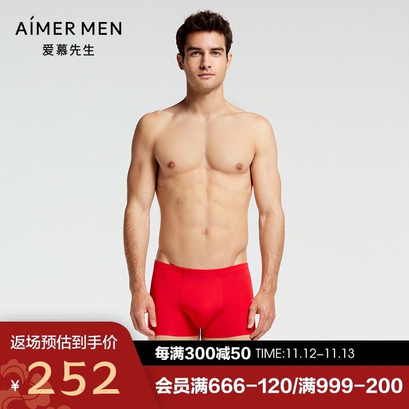 【产品名称:爱慕先生本命年红色开运系列内裤男红中腰平角内裤四角裤NS23V91】