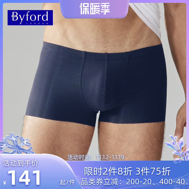 【产品名称:BYFORD/百富【商场款】男棉内裤无痕四角裤轻薄透气平角裤MW99011】