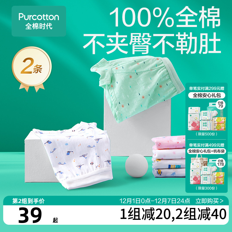 【产品名称:全棉时代2条装100%棉儿童内裤男女童平角短裤中大童三角透气短裤】