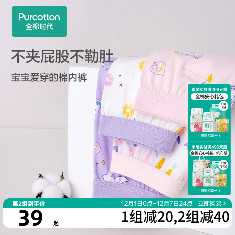 【产品名称:全棉时代2条装100%纯棉儿童内裤男女童四角裤宝宝三角裤平角裤】