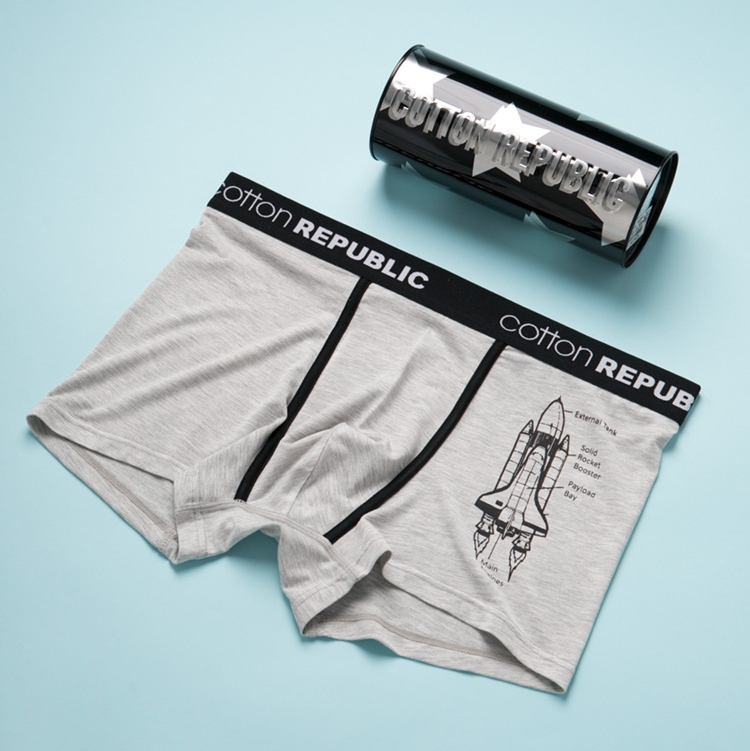 【产品名称:棉花共和国太空系列男士莫代尔灰色中腰平角内裤铁桶礼盒装送男友】