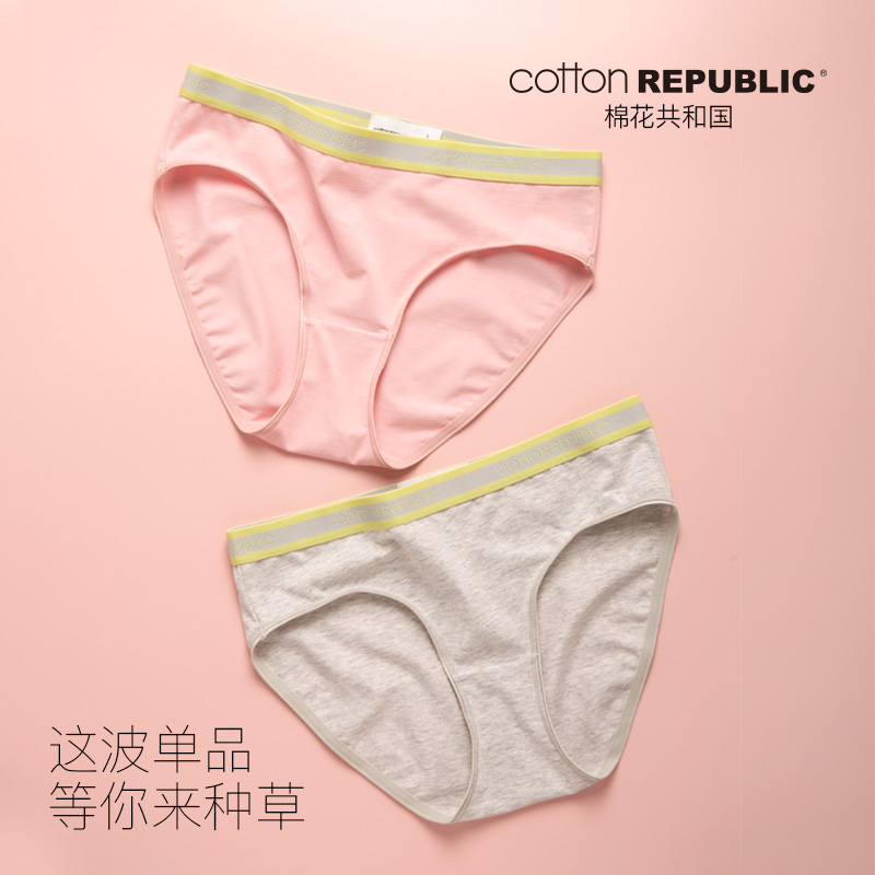 【产品名称:棉花共和国夏季新款女士浅色宽腰带棉质透气三角运动舒适女孩内裤】