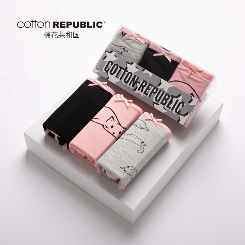 【产品名称:棉花共和国时尚粉灰黑科技面料女士卡通三角内裤礼盒装新年送礼物】