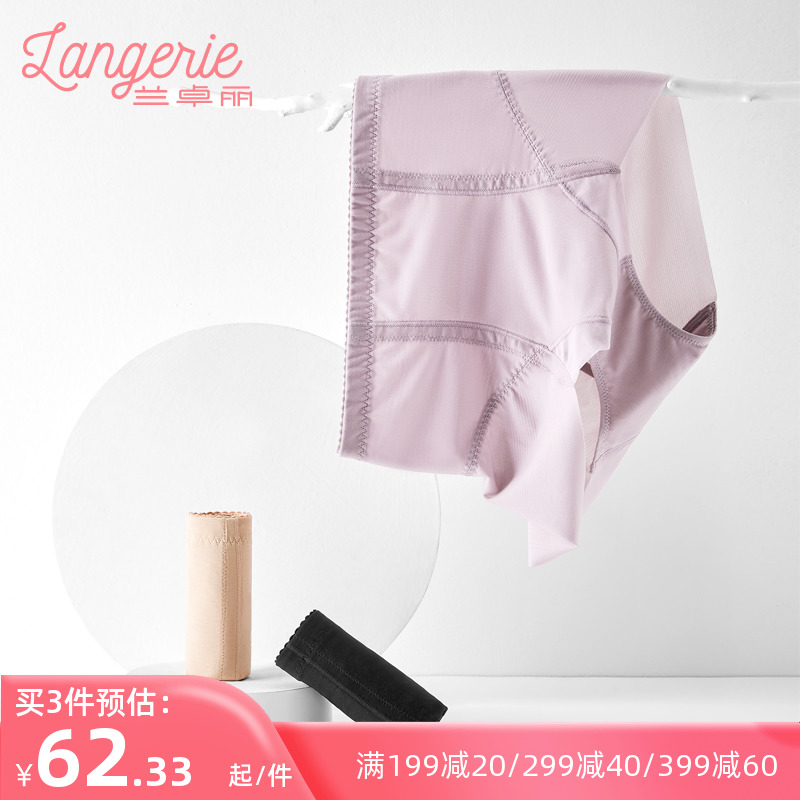 【产品名称:兰卓丽内裤女纯棉底裆中高腰塑身平角裤短裤无痕包容底裤防走光】