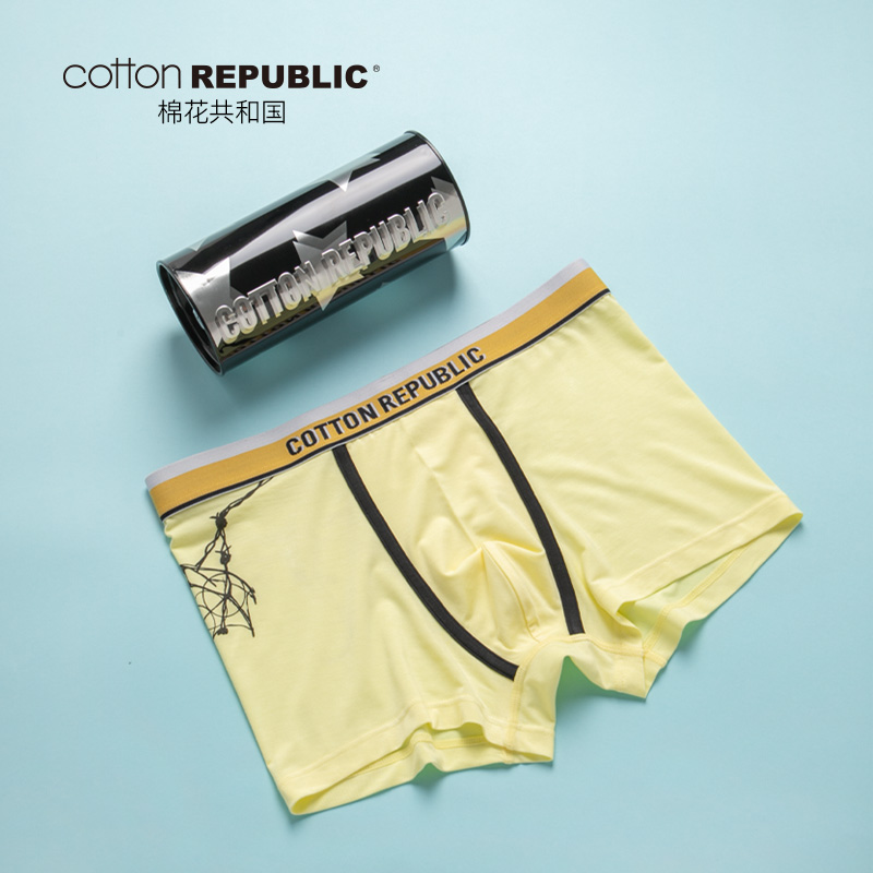 【产品名称:棉花共和国男士莫代尔黄色宽腰秋冬平角内裤情人节送老公官方旗舰】