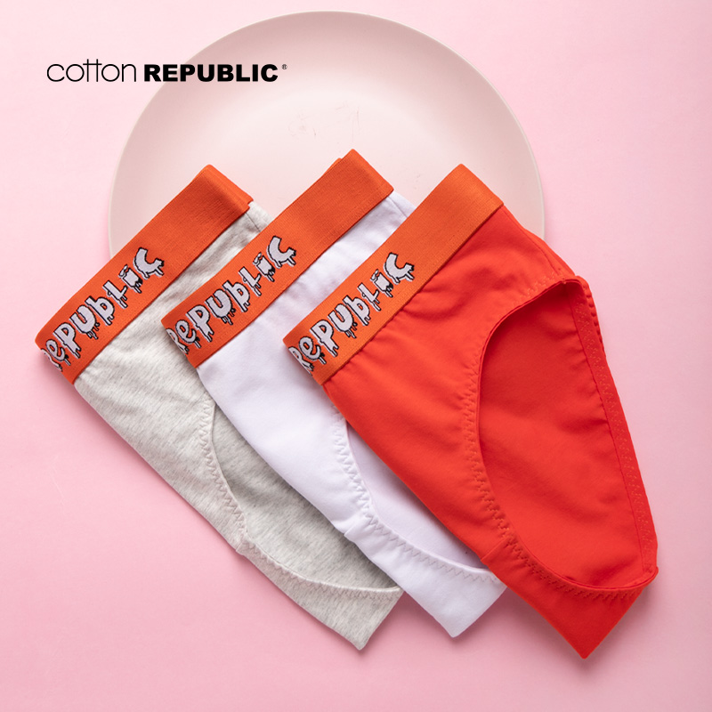 【产品名称:棉花共和国女士简约宽腰边运动纯色橘色潮流中性焦三角内裤礼盒装】