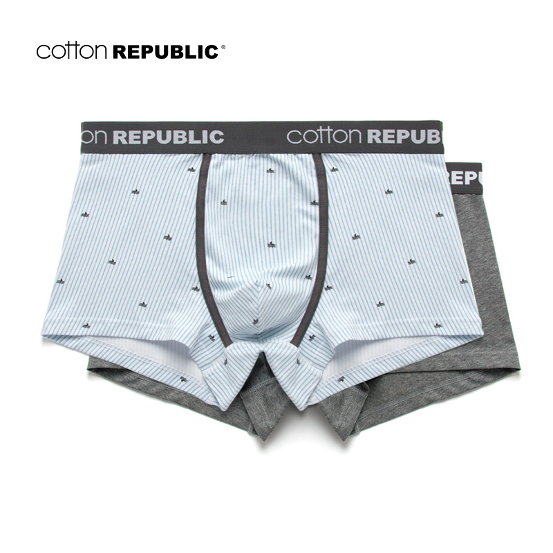 【产品名称:棉花共和国男士平角四角短裤头条纹简约潮牌棉质内裤旗舰店正品】