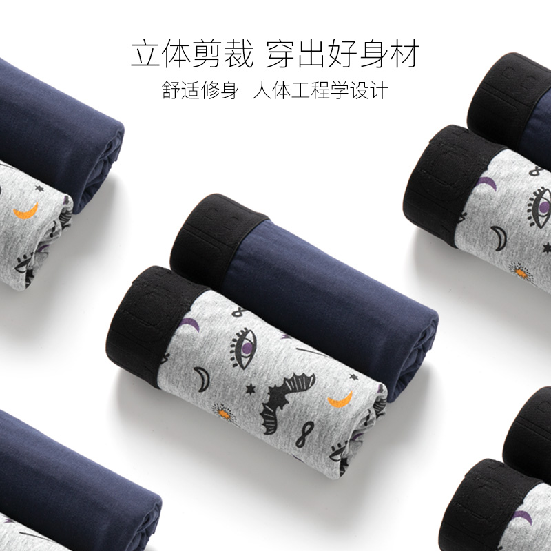 【产品名称:棉花共和国日系原宿风男士时尚印花U凸棉蓝灰平角裤头内裤个性潮】