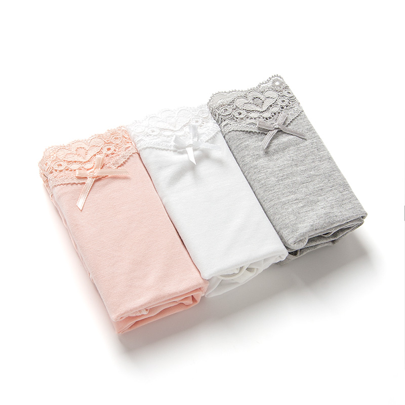 【产品名称:棉花共和国女士浅粉蓝白色莫代尔面料内裤蕾丝无痕莫兰迪】