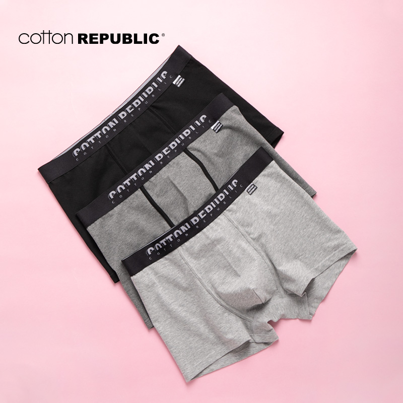 【产品名称:棉花共和国新款男士棉质平角纯色灰黑中腰四角内裤短裤头送礼盒装】