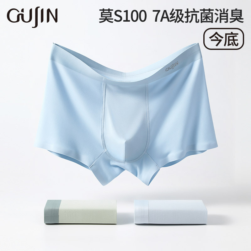 【产品名称:古今莫代尔男士平角内裤7A级抗菌纯棉内档透气无痕防夹臀四角短裤】