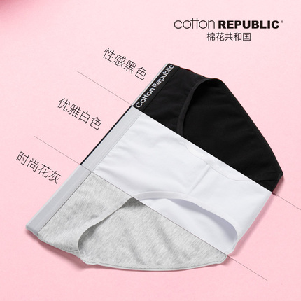 【产品名称:棉花共和国女士中性无痕纯色黑白运动透气潮宽边中腰三角内裤套装】