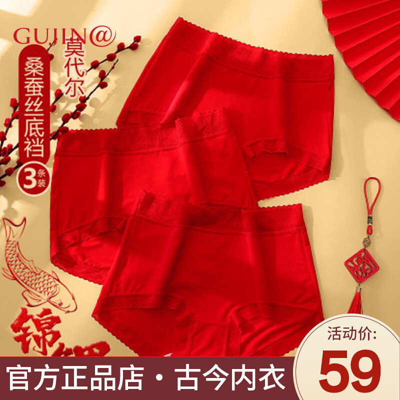 【产品名称:古今@本命年大红色女士内裤高腰桑蚕丝新娘结婚礼物兔年无痕短裤】