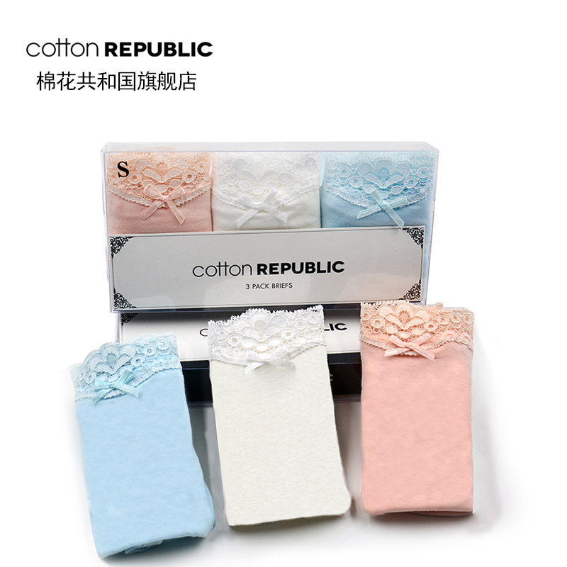 【产品名称:棉花共和国女士内裤三角低腰性感蕾丝边纯色三角裤3条装学院日韩】