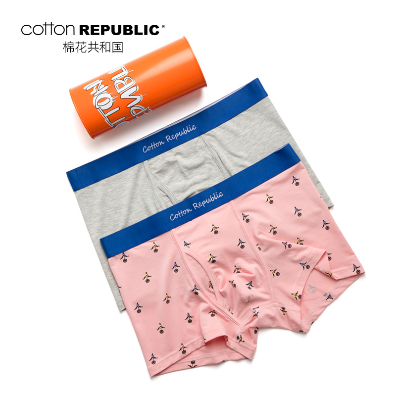 【产品名称:棉花共和国男士莫代尔平角四角印花内裤2条礼盒装新年送男朋友潮】