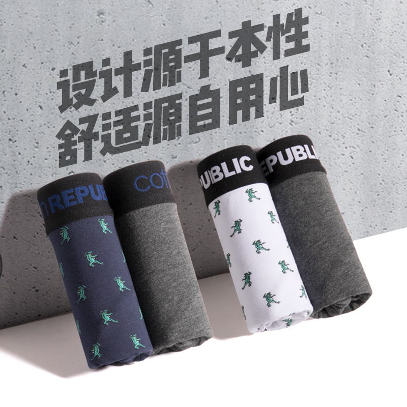 【产品名称:棉花共和国男平角四角内裤棉运动裤头潮牌青年夏男裤头宽松旗舰店】