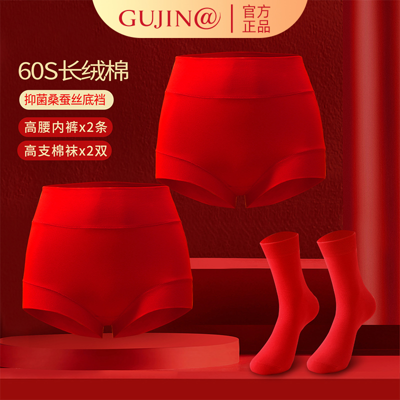 【产品名称:古今本命年红内裤女龙年属龙纯棉三角裤头大红色女士内裤袜子套装】