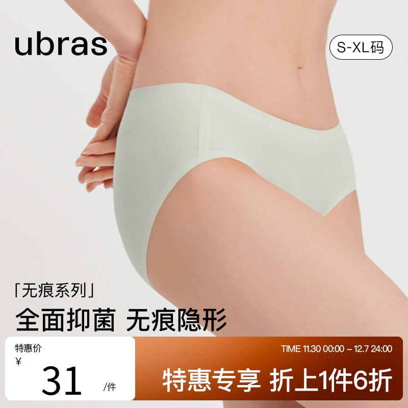 【产品名称:ubras无痕隐形UU抗菌舒适透气中腰一片式高弹三角裤内裤女】