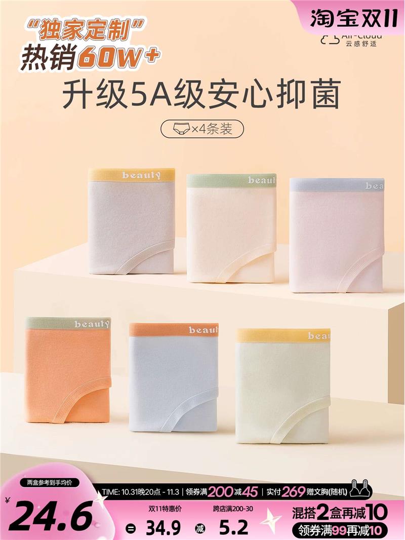 【产品名称:六只兔子4条装新疆棉质内裤女士全棉抗菌裆少女无痕中腰三角短裤】