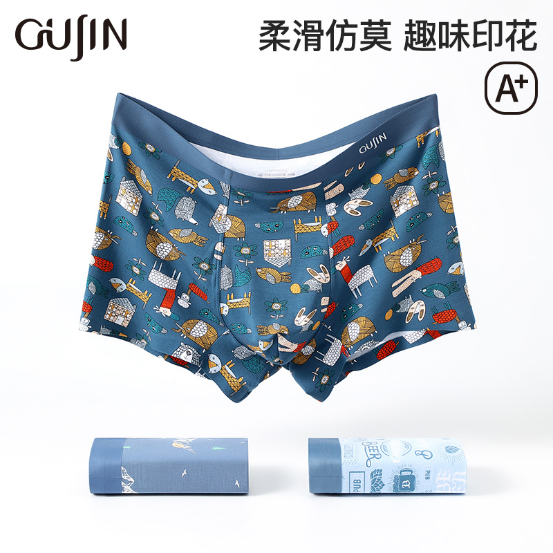 【产品名称:古今仿莫印花卡通男士平角内裤青年学生透气无痕男内裤潮流男裤衩】