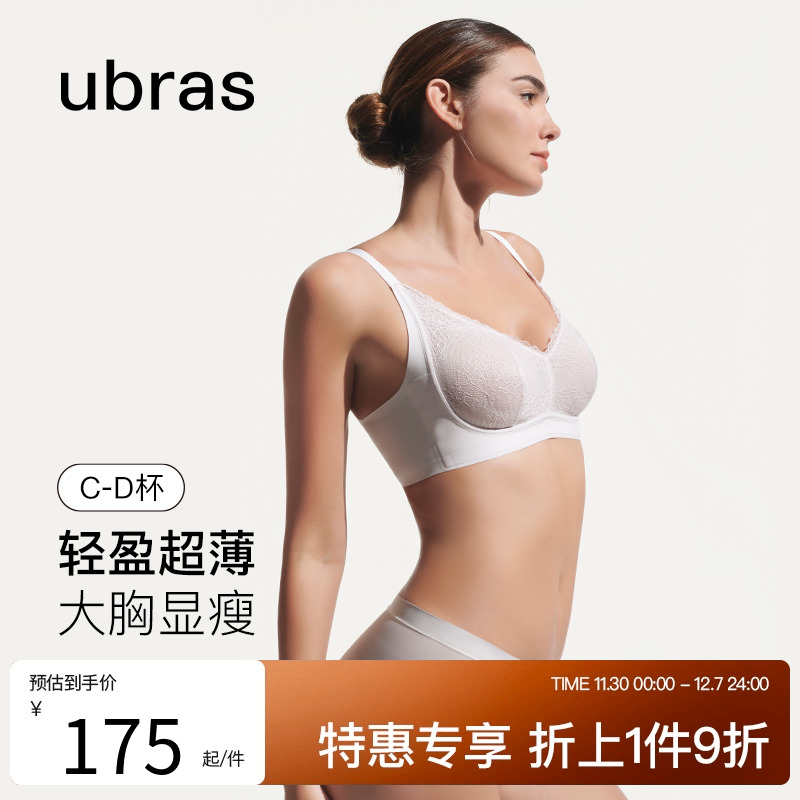 【产品名称:ubras翎羽蕾丝防下垂承托收副乳大胸显小显瘦文胸内裤套装内衣女】