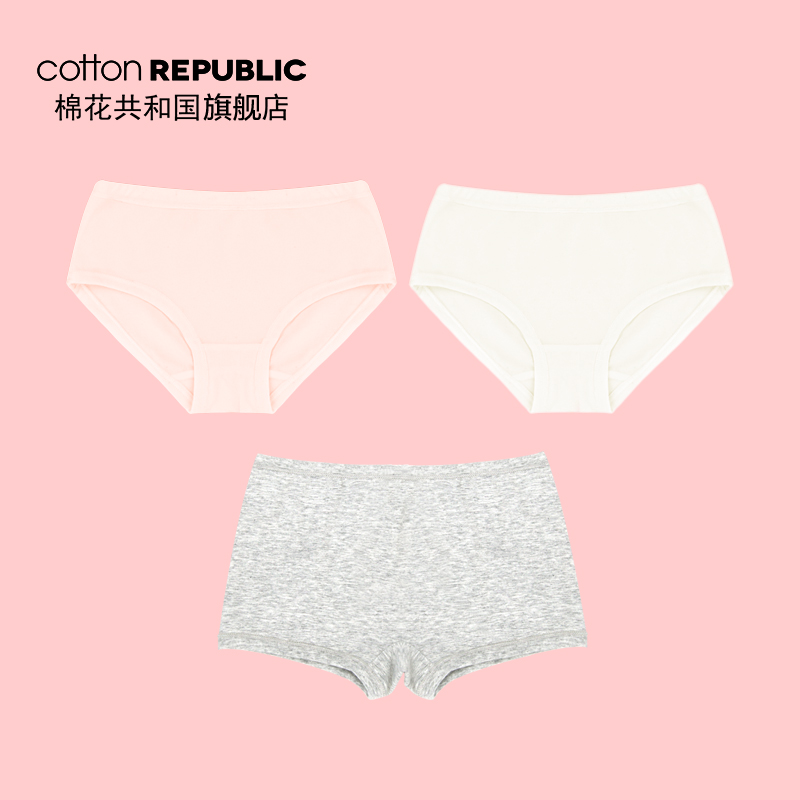 棉花共和国女童3-9岁微型窗单向导湿快速排汗三角平角儿童内裤3条