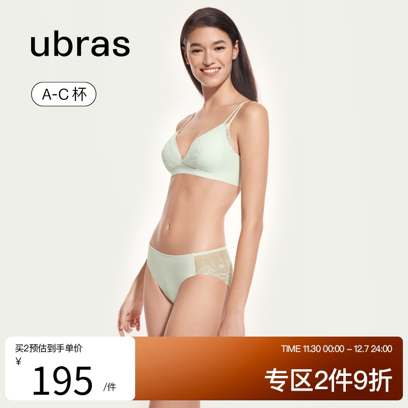 【产品名称:ubras春日蕾丝无钢圈法式性感小胸聚拢双肩带文胸罩内裤套装女】