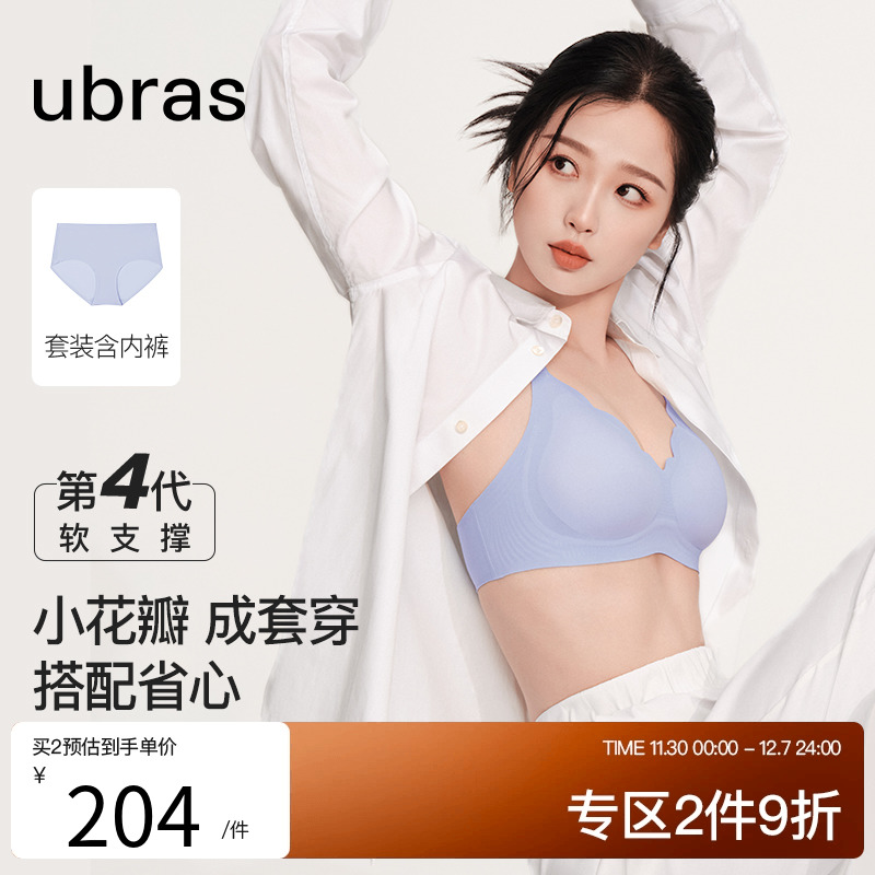 【产品名称:ubras虞书欣同款小花瓣软支撑小胸聚拢无痕文胸内裤套装内衣女】