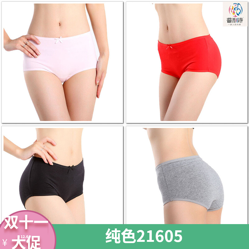 【产品名称:普利诗正品弹力纯棉柔软舒适大码妈妈中高腰女式平三角内裤21605】