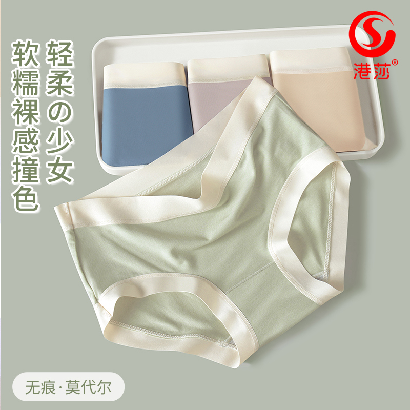 【产品名称:港莎茶多酚抑菌内裤女莫代尔抗菌女士三角裤无痕裤头透气舒适裤衩】