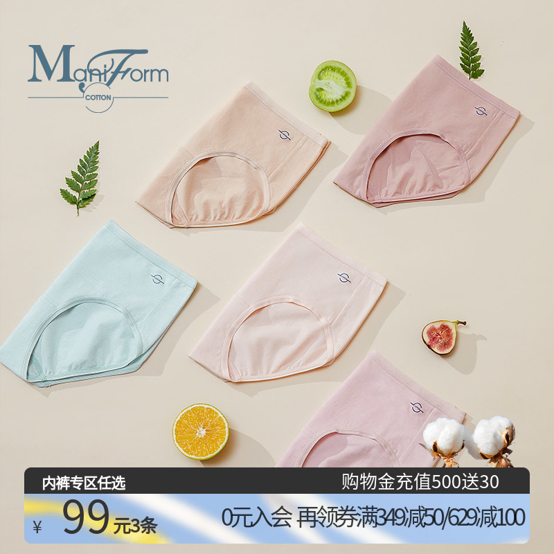 【产品名称:【99元3条】曼妮芬棉质生活60支长绒棉高腰中腰全棉抗菌裆内裤女】