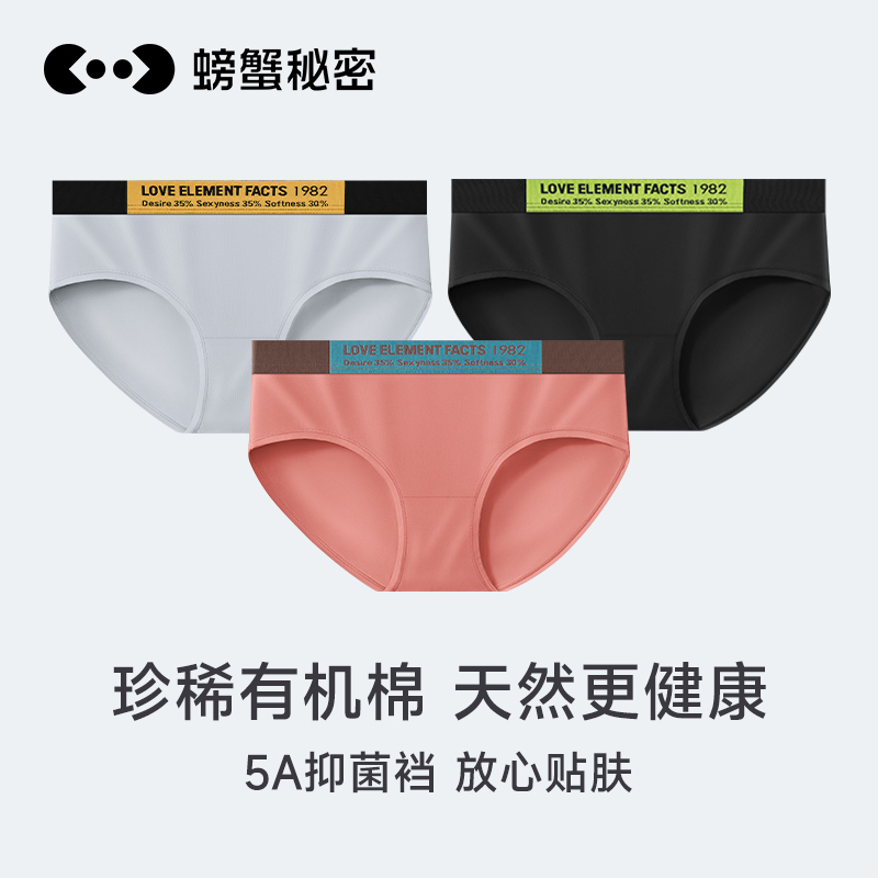 【产品名称:螃蟹秘密内裤女士抗菌三角裤100%棉裆透气中腰运动短裤性感不夹臀】
