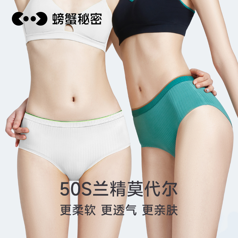【产品名称:螃蟹秘密透气运动无痕女士内裤桑蚕丝抗菌中腰莫代尔少女三角裤】