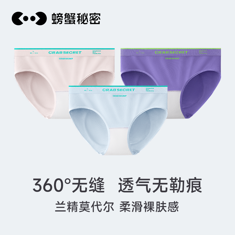 【产品名称:螃蟹秘密女生内裤莫代尔抗菌裆女士无缝短裤中腰运动提臀三角裤】